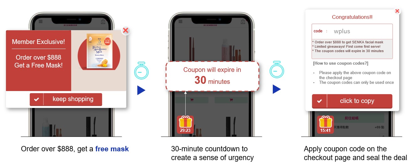 Specifically, watashi+ by shiseido taiwan incorporates the following 3 steps to successfully capture the hesitant buyer